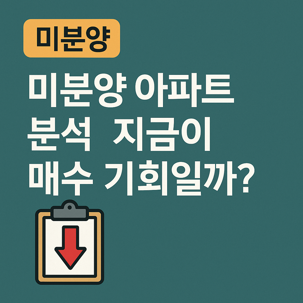 미분양 아파트는 '위험'과 '기회'가 동시에 존재하는 시장입니다. 지금 같은 불확실성 국면에서는 준공 후 안정된 입지 + 가격 할인 + 실거주 가능성이 결합된 매물이 투자 매력도가 높습니다.